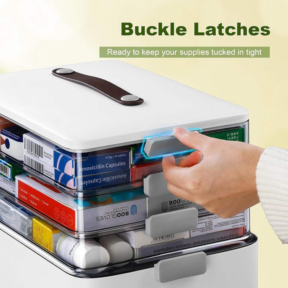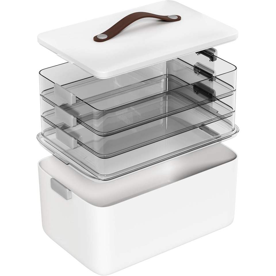 Organizador de Medicamentos Portátil de 4 Niveles, Caja de Almacenamiento con Asa de Cuero y Cierre, para Armario, Organización del Hogar, Organizador de Maquillaje