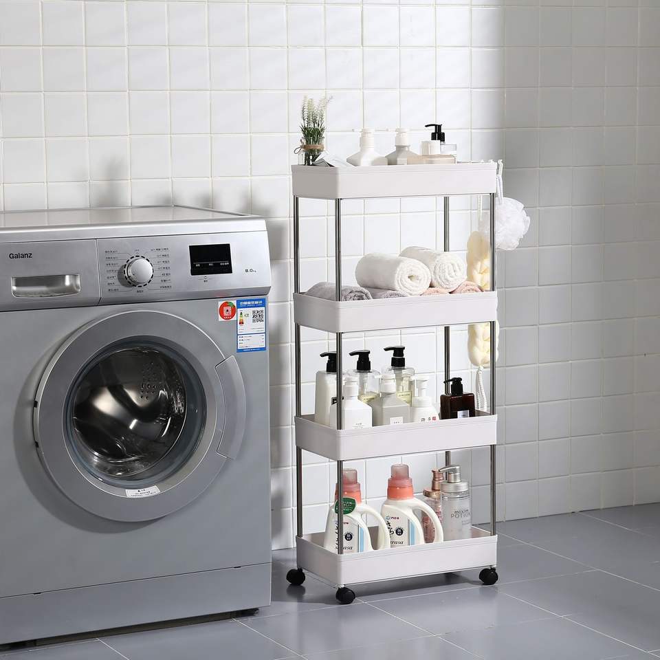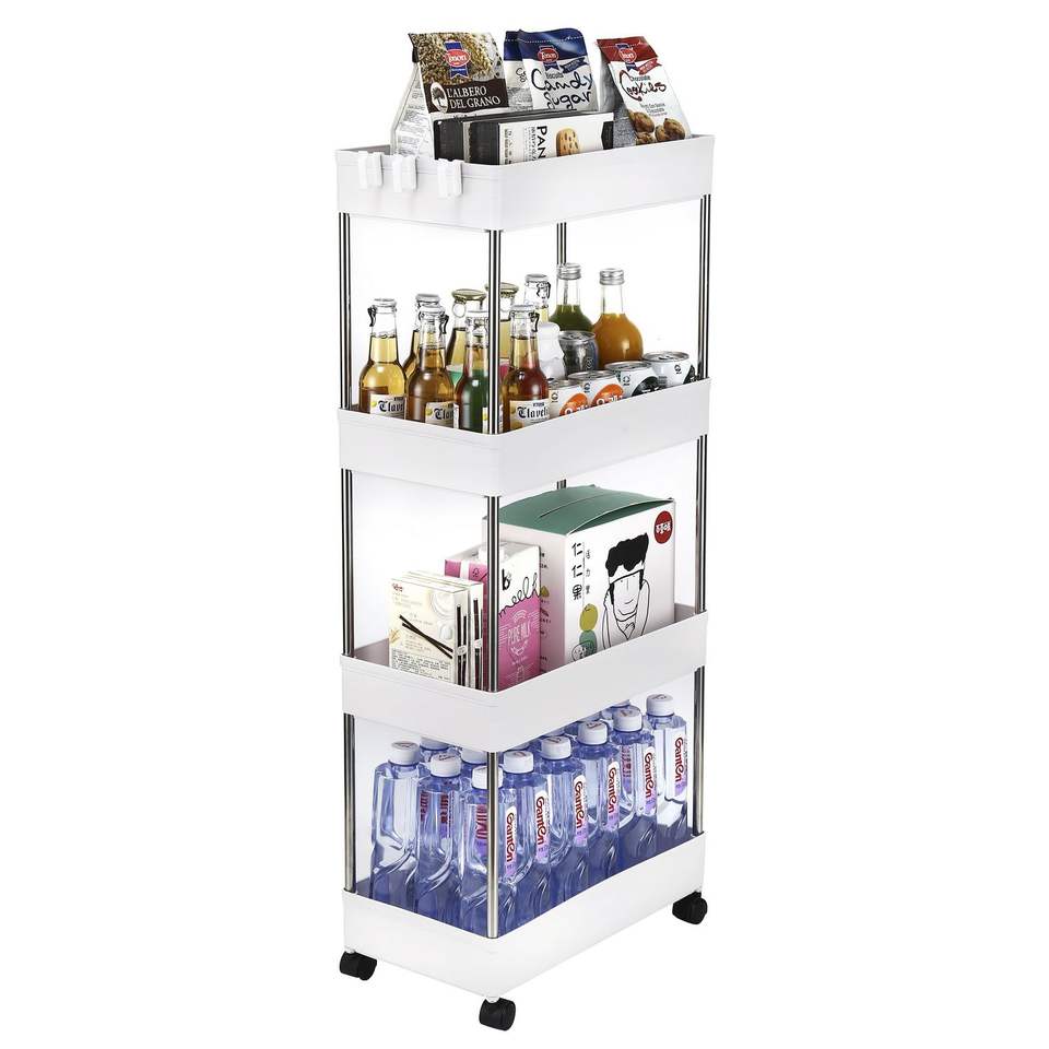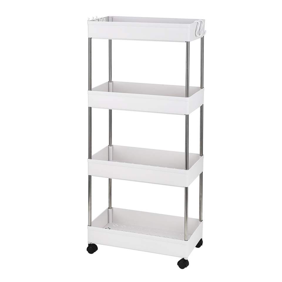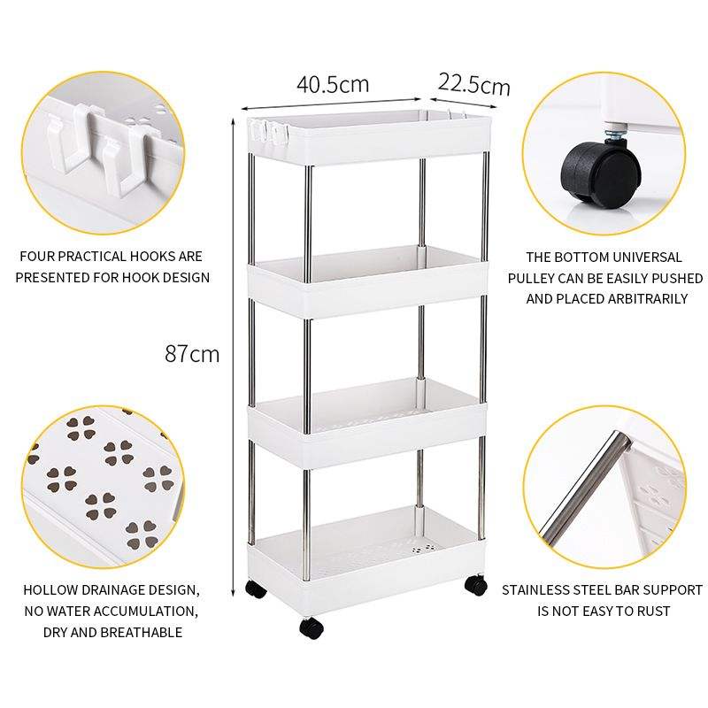 Carrito de Almacenamiento Rodante de 4 Niveles con 4 Cestas de Almacenamiento, Organizador Móvil con Estantes