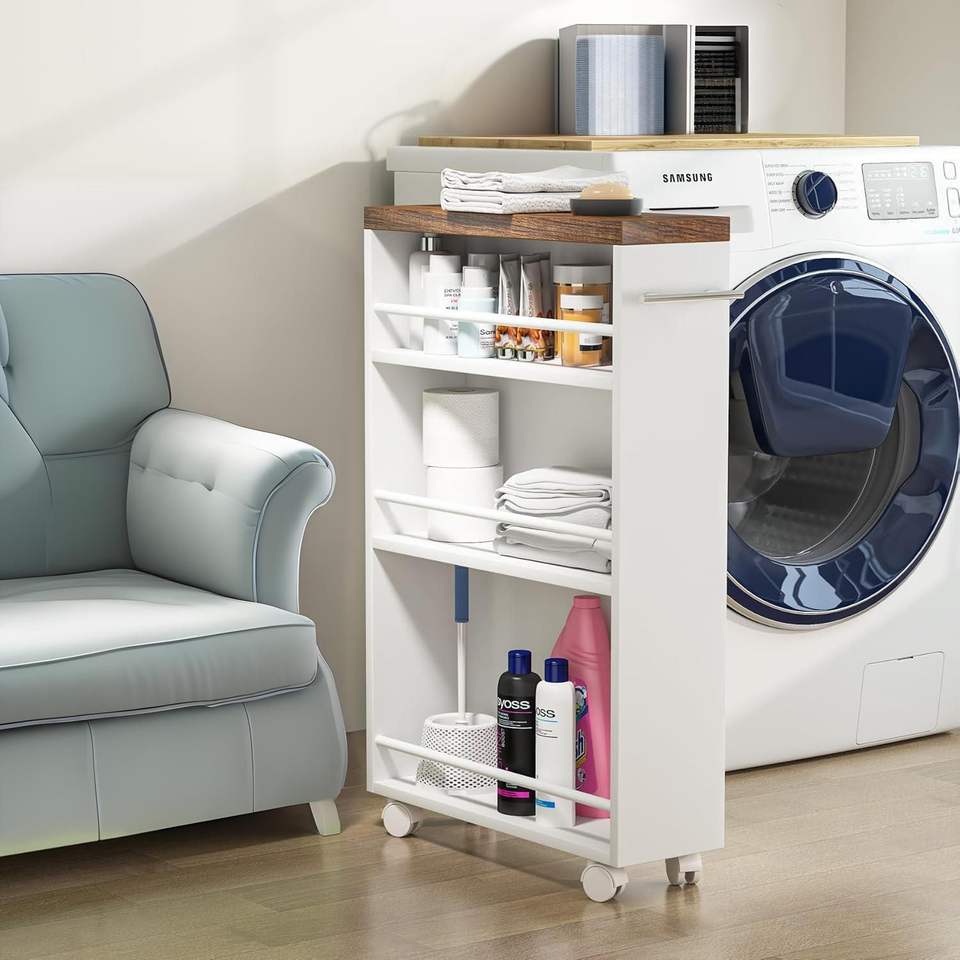 Carrito de Almacenamiento Estrecho de 4 Niveles con Ruedas, Carrito de Lavandería Delgado para Espacios Pequeños, Carrito de Almacenamiento Deslizante de 4 Niveles