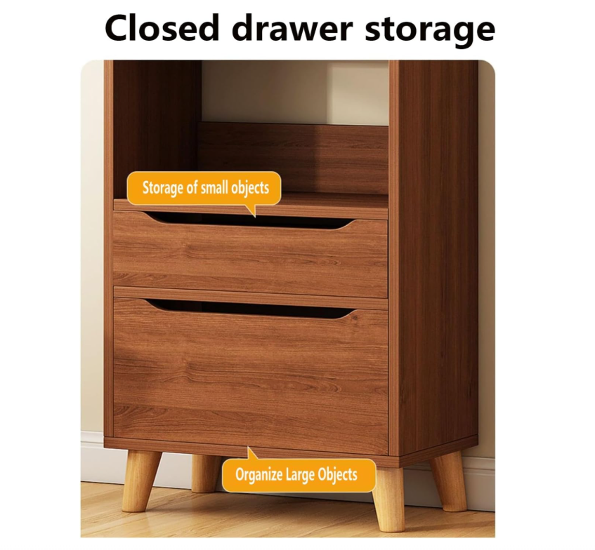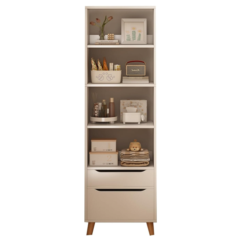 Vitrina de librería estrecha de 4 niveles de altura con cajón doble Exhibición de libros moderna Pantalla abierta para biblioteca/dormitorio/sala de estar