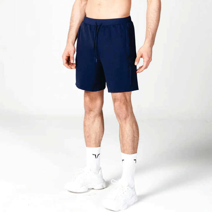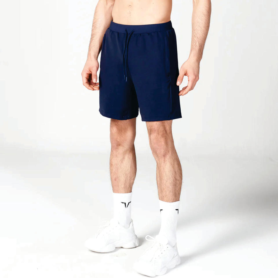 Pantalones cortos elásticos de 4 vías, ligeros, azul marino, con cintura acanalada y bajos ajustados