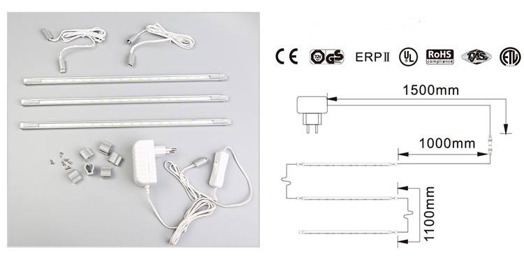 Enchufe de 4X30cm LED debajo del Gabinete Luz Led Armario de cocina Tira de luces Luz de día Cool