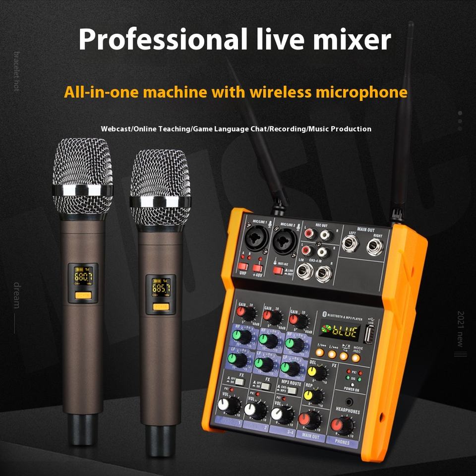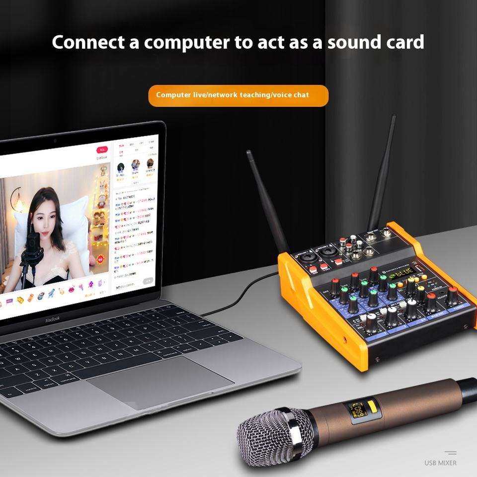 Consola de mezcla de 4 canales Dispositivo de efectos de rendimiento en el hogar para micrófono inalámbrico Computadora Transmisión en vivo Karaoke