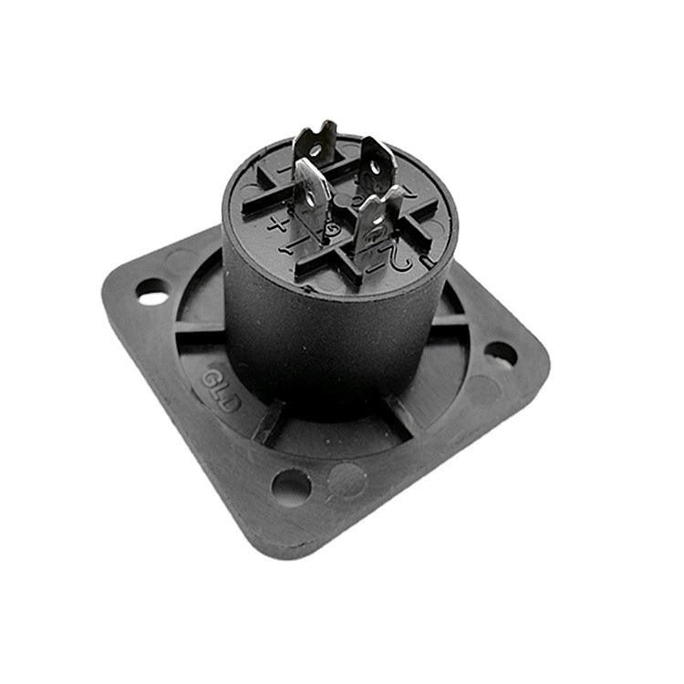 Conector de audio profesional de 4 núcleos con cuatro terminales cuadrados NL4 y conector de audio Ohmic con lámina metálica