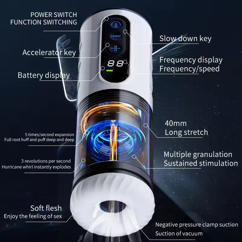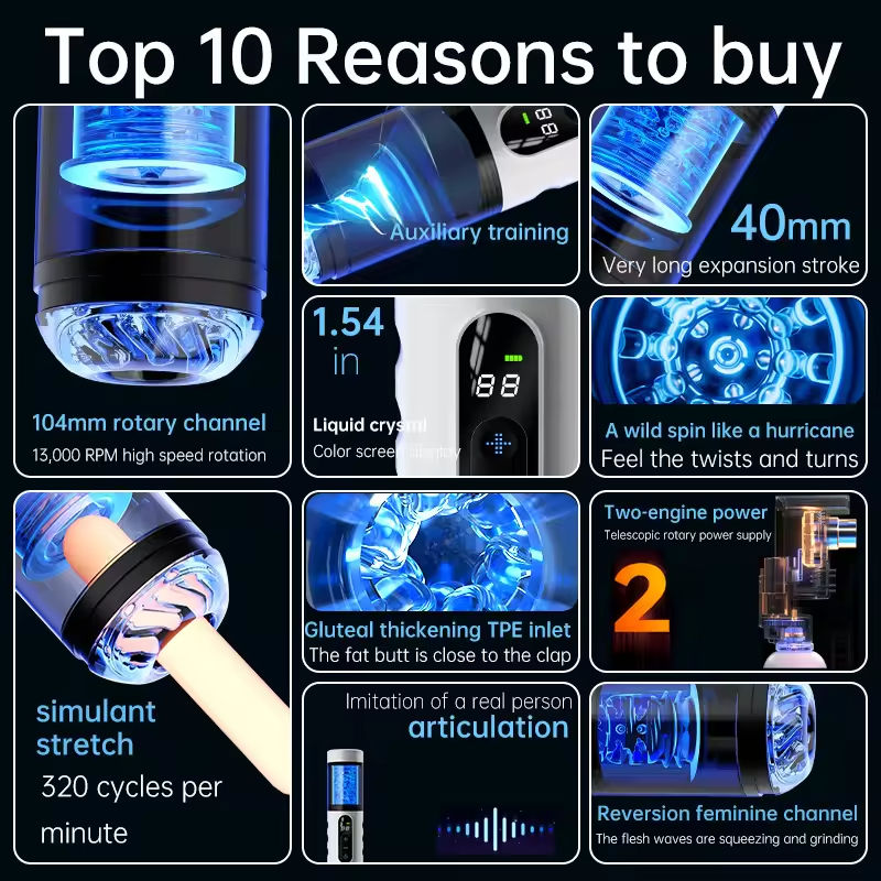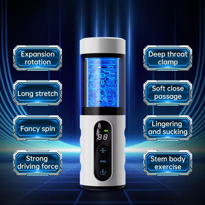 Máquina de Masturbación Automática 4 en 1, Juguetes Sexuales Orales, 9 Modos de Empuje y Rotación, Pantalla Digital, Bomba para Pene, Simulación de Penetración