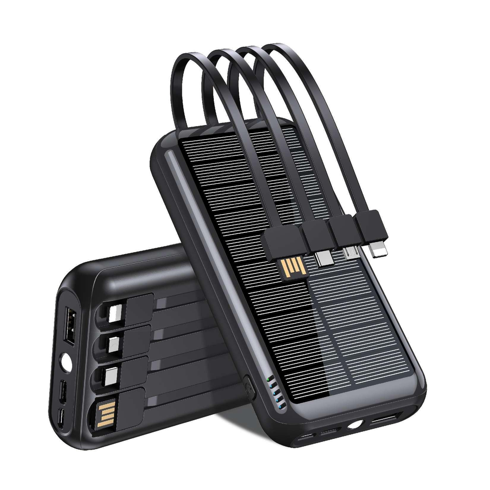 Cargador Solar 4 en 1 con Cable USB Integrado, Banco de Energía de Almacenamiento de Energía Solar de 30000 mAh, Suministro de Banco de Energía Solar con Baterías de Iones de Litio