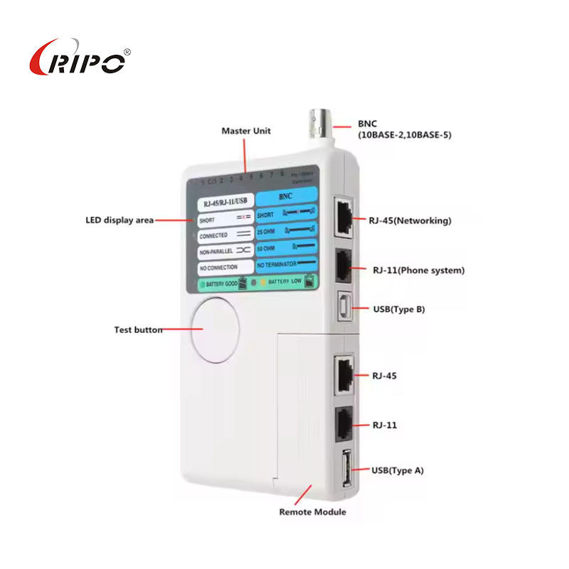 Ripo MULTI-TEST 4IN1 (Serie BNC-RJ-USB) Comprobador de Cables Portátil para RJ11, RJ45, USB, BNC, Par Trenzado y Coaxial, Accesorio Electrónico