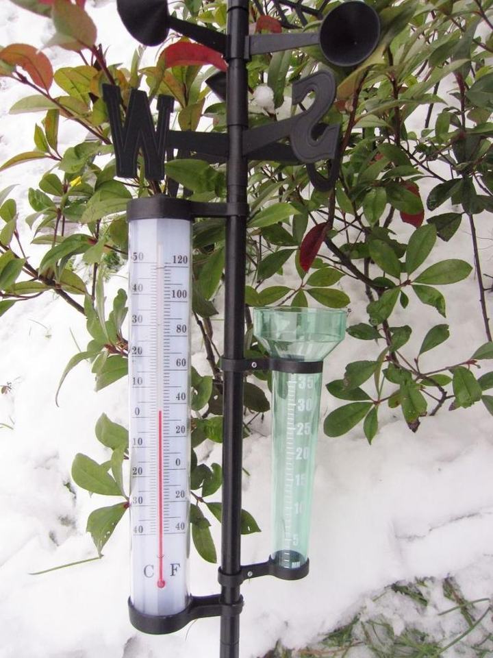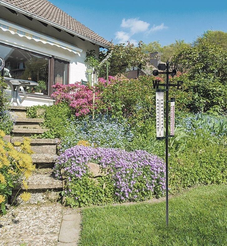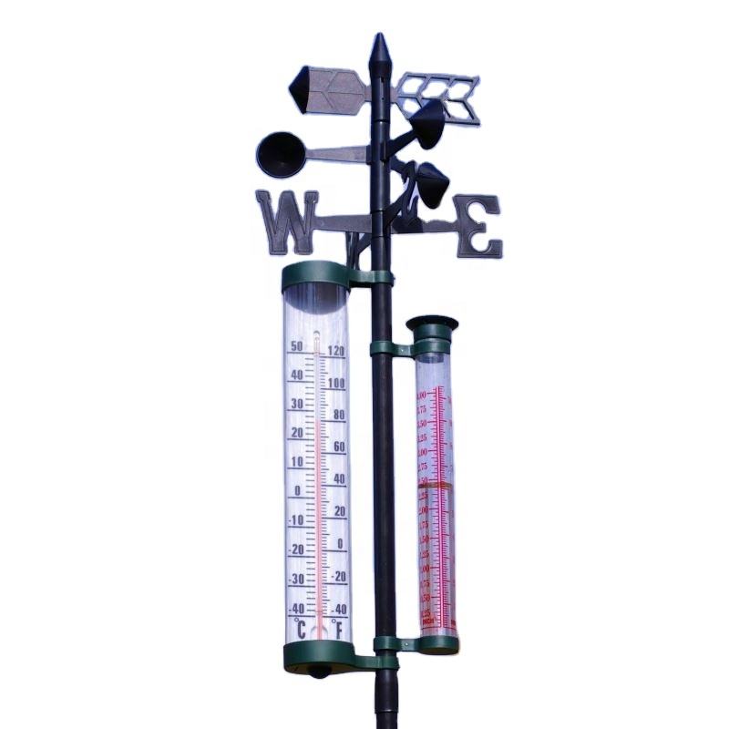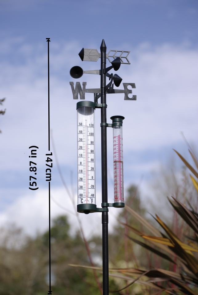 Estación Meteorológica de Jardín 4 en 1 con Tubo de Hierro, Veleta y Pluviómetro