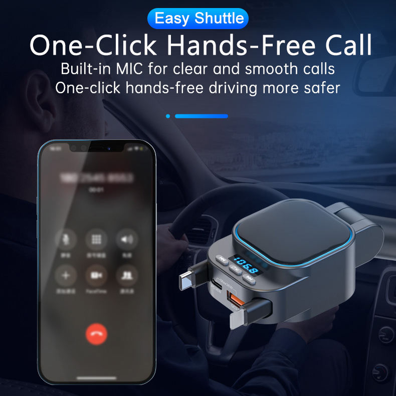 Cargador de teléfono de coche retráctil 4 en 1 Tipo C 96W PD BT 5,3 transmisor FM cargador de coche REPRODUCTOR DE MP3 manos libres Radio de coche cargador rápido