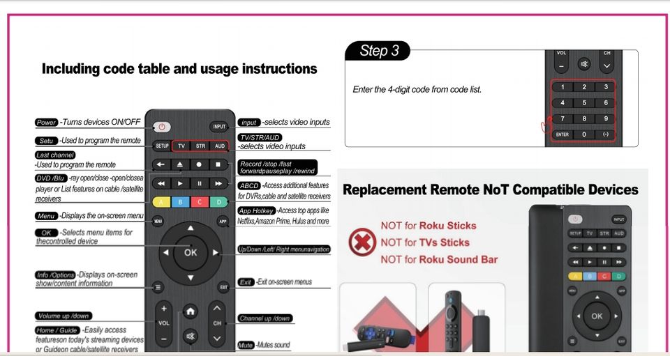 Control Remoto Universal 4 en 1 RC-G009 para Samsung, Sony, Philips y CBL, DVD, Audio AUX