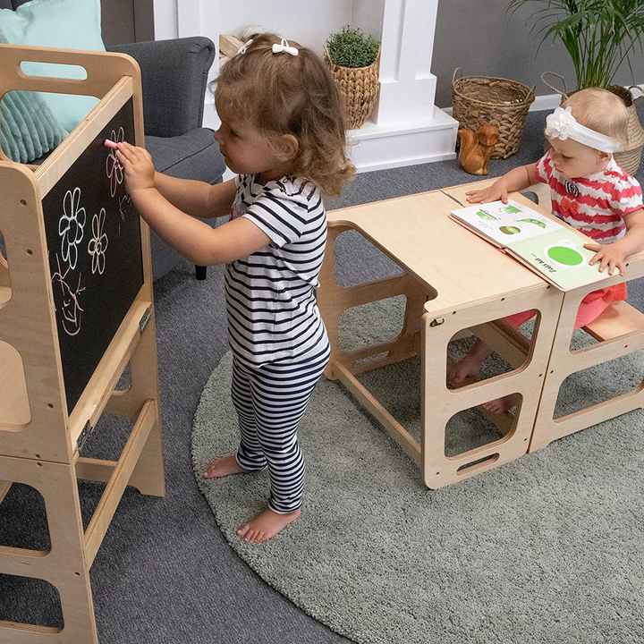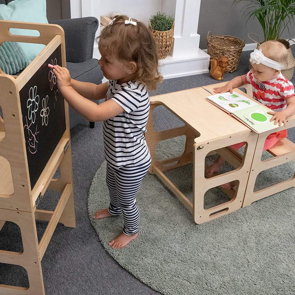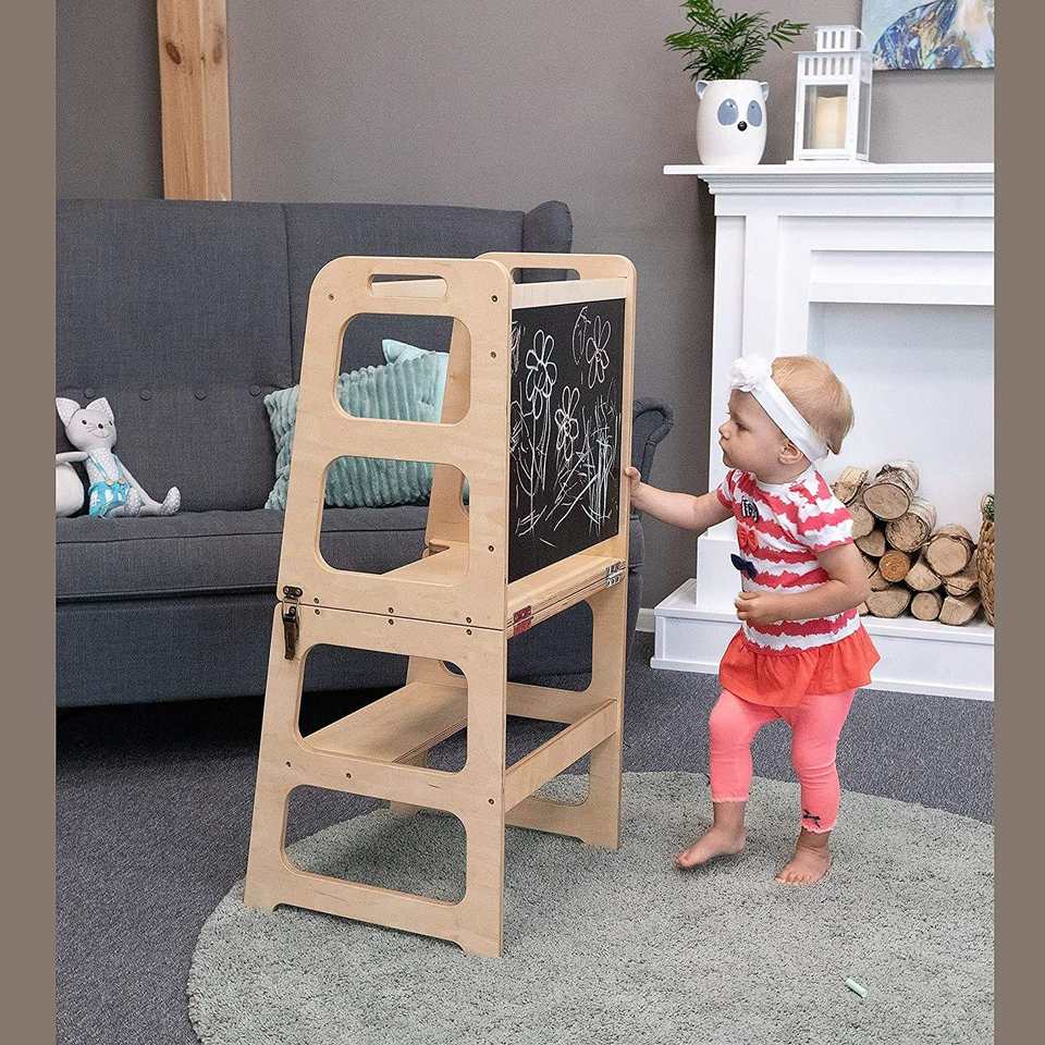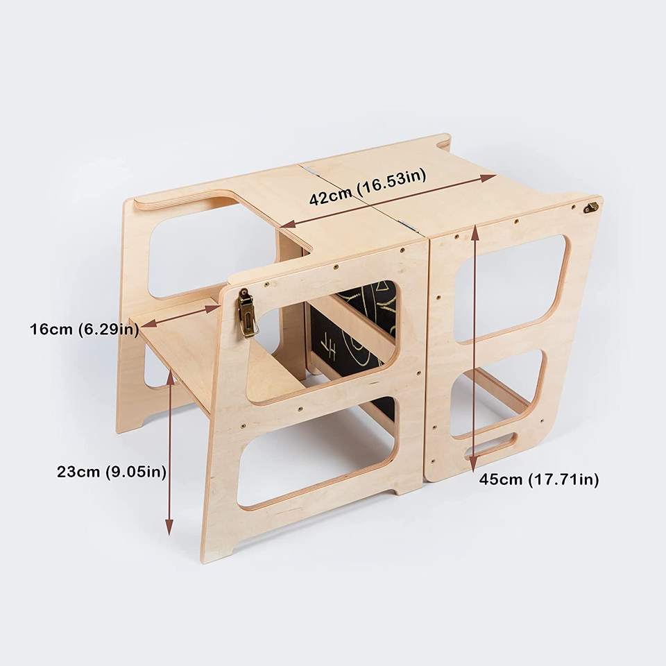Torre de Aprendizaje 4 en 1 de Madera para Niños Pequeños, Taburete de Cocina, Torre de Cocina 3 en 1, Taburete de Aprendizaje, Escritorio, Torre de Aprendizaje de Madera