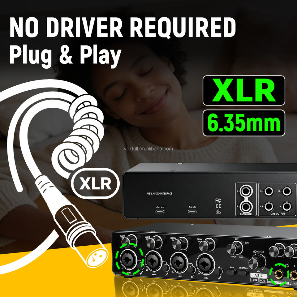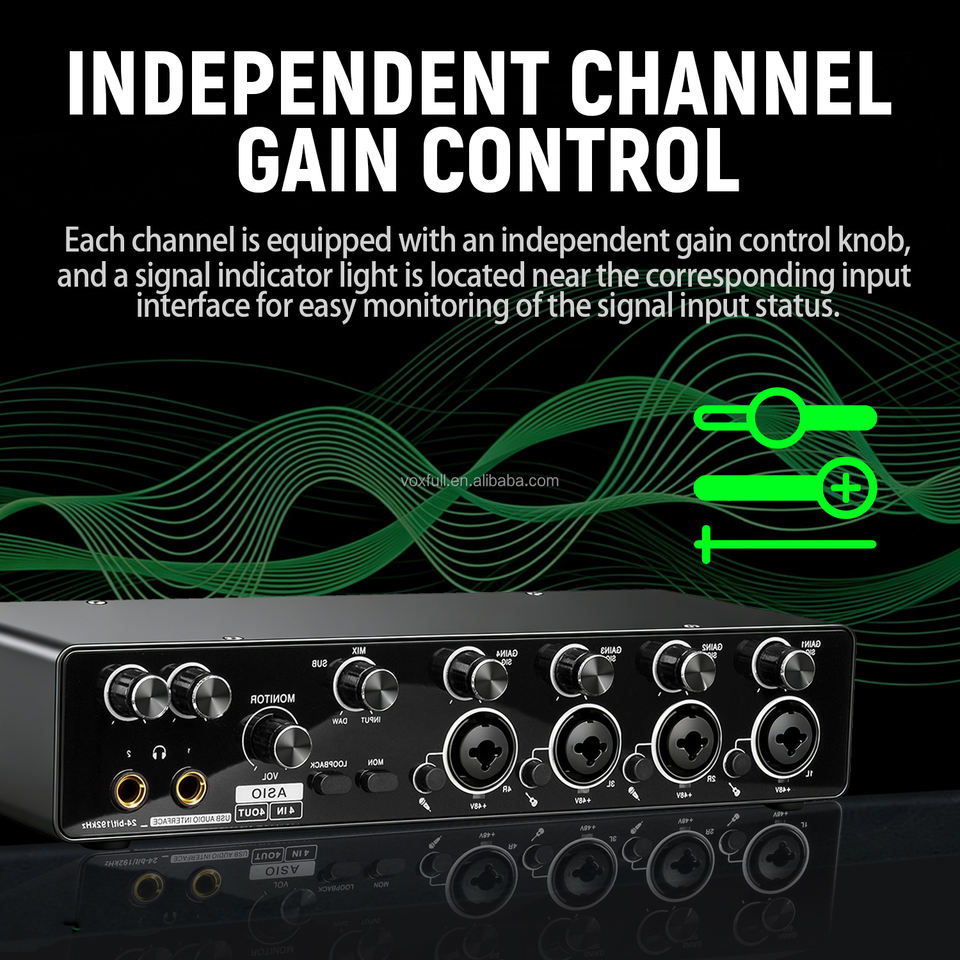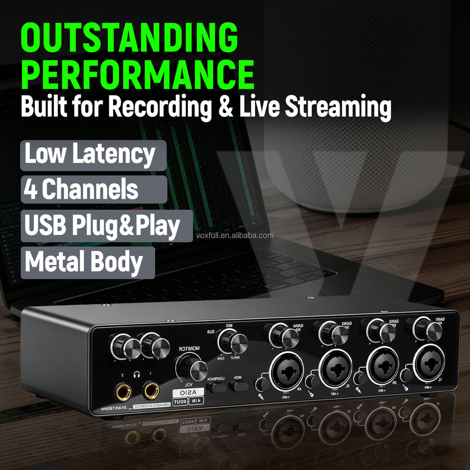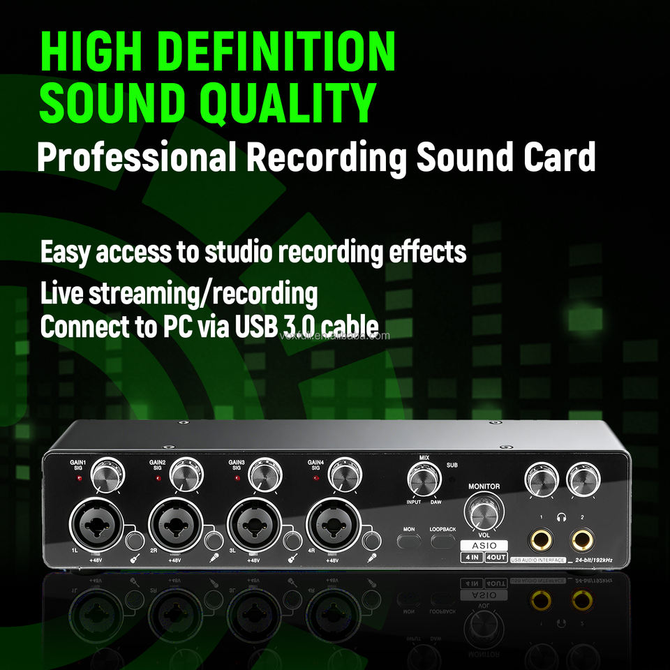 Interfaz de Audio USB 4 Entradas y 4 Salidas con Controlador ASIO, Tarjeta de Sonido USB 3.0 para Grabación en Estudio, Transmisión en Vivo, Podcast y Producción Musical