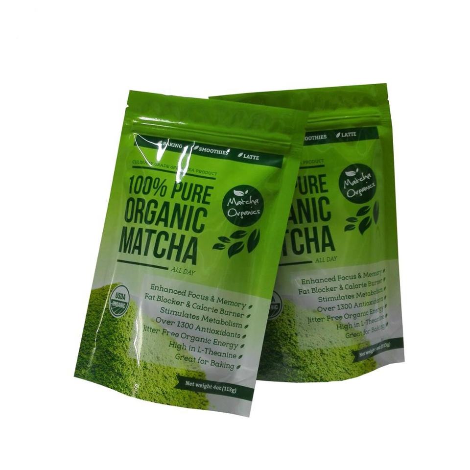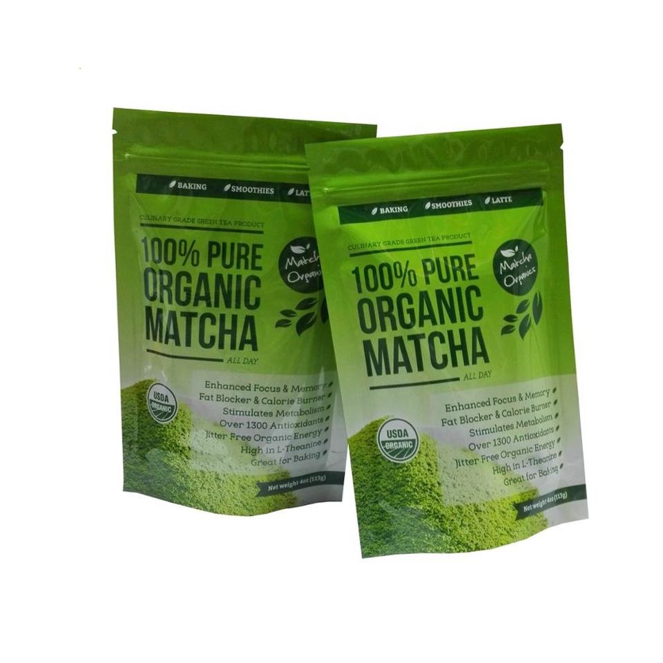 4 oz 113g Green Tea Matcha Powder Packaging Plastic Foil Bag Ziplock Stand Up Pouch 1000-5000 piece/carton or as your request