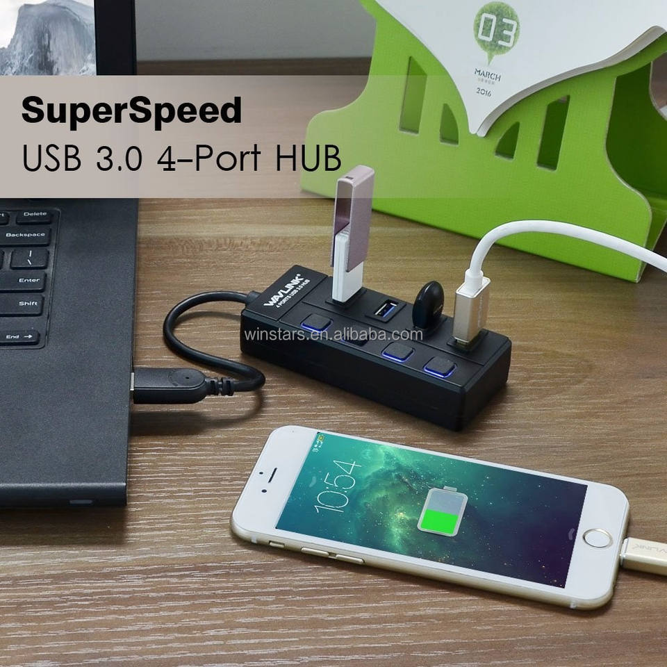 4 puertos USB hub de alta velocidad por, hub USB con interruptor de alimentación individual