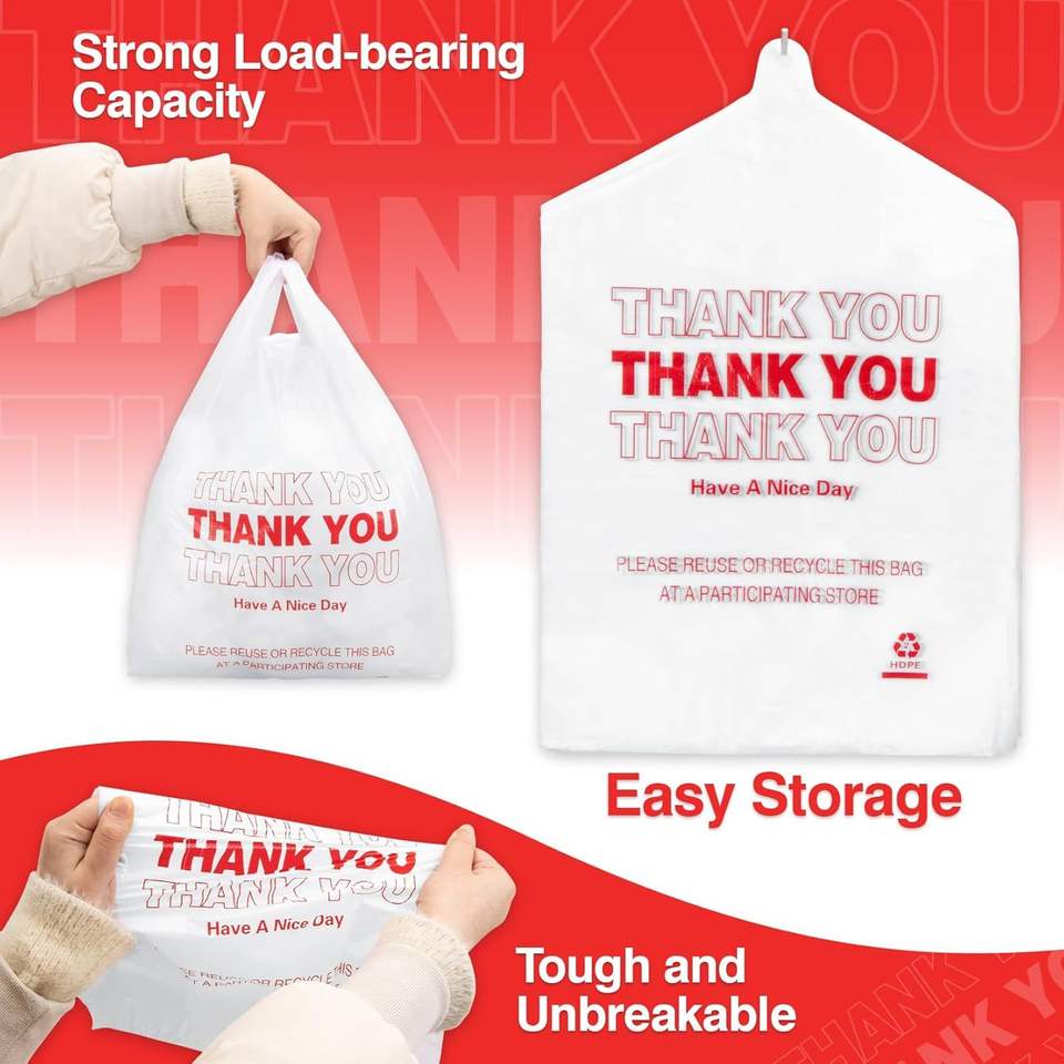 Paquete de 40 Bolsas de Plástico para Compras con Asas, de 11 x 21 Pulgadas, Compatibles con Supermercados y Tiendas de Abarrotes, Ideales para Guardar Artículos del Hogar