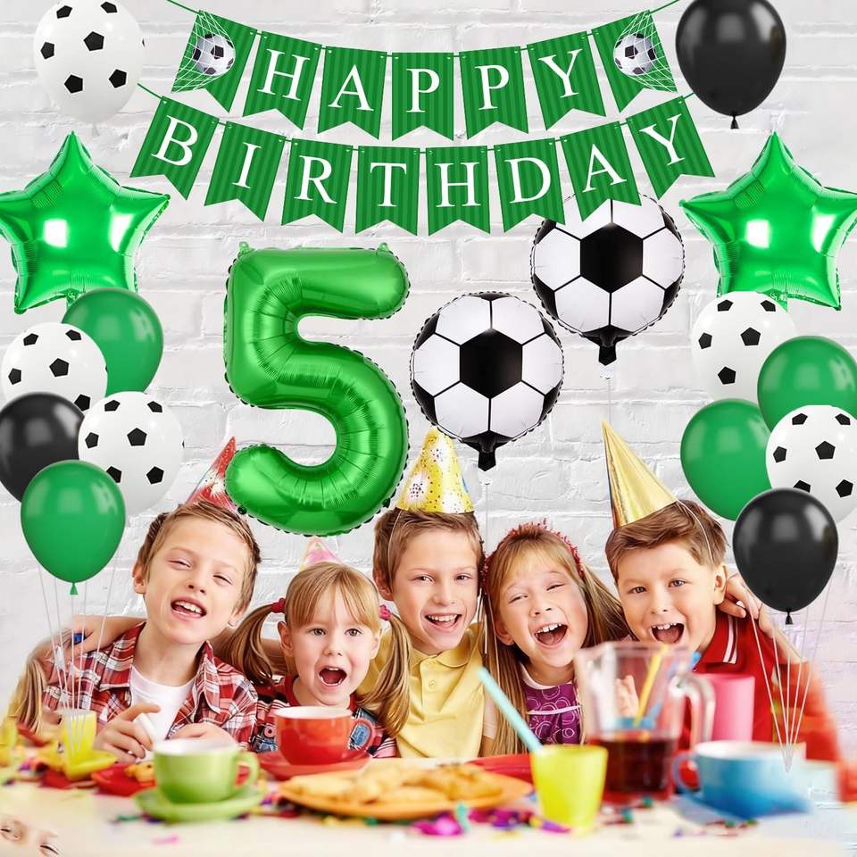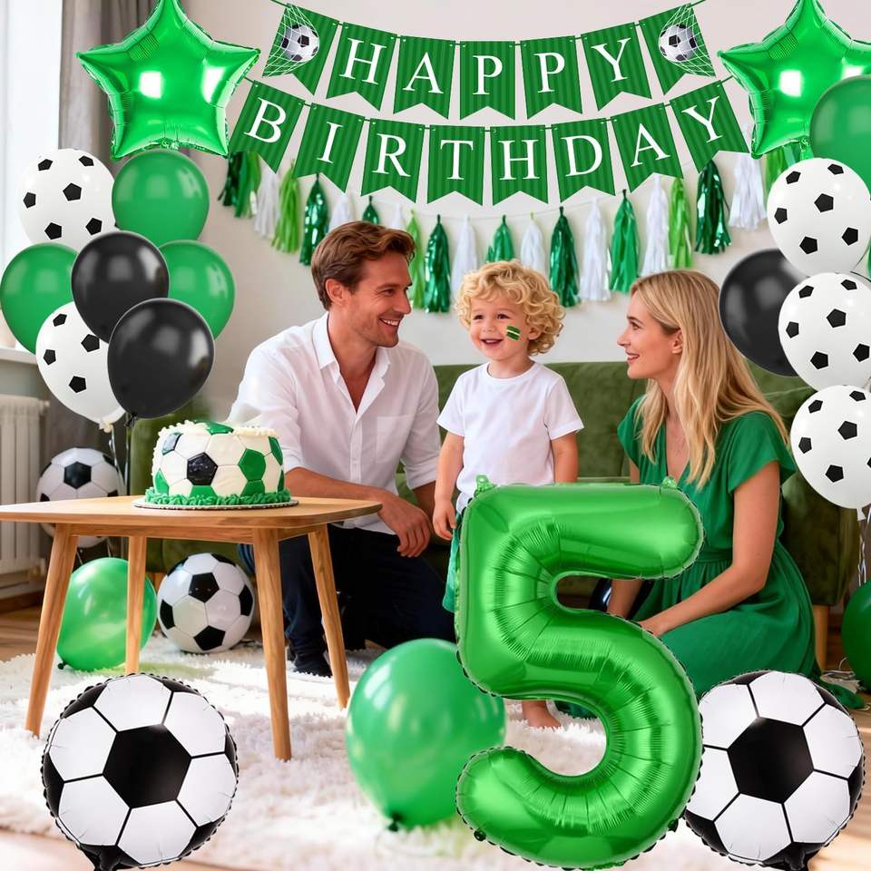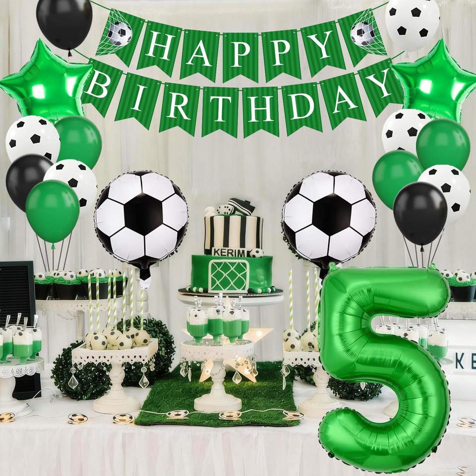 Globo Verde Número 5 de 40 Pulgadas, Pancarta de Feliz Cumpleaños, Globos de Fútbol para Decoración de Fiesta Temática de Fútbol Número 5
