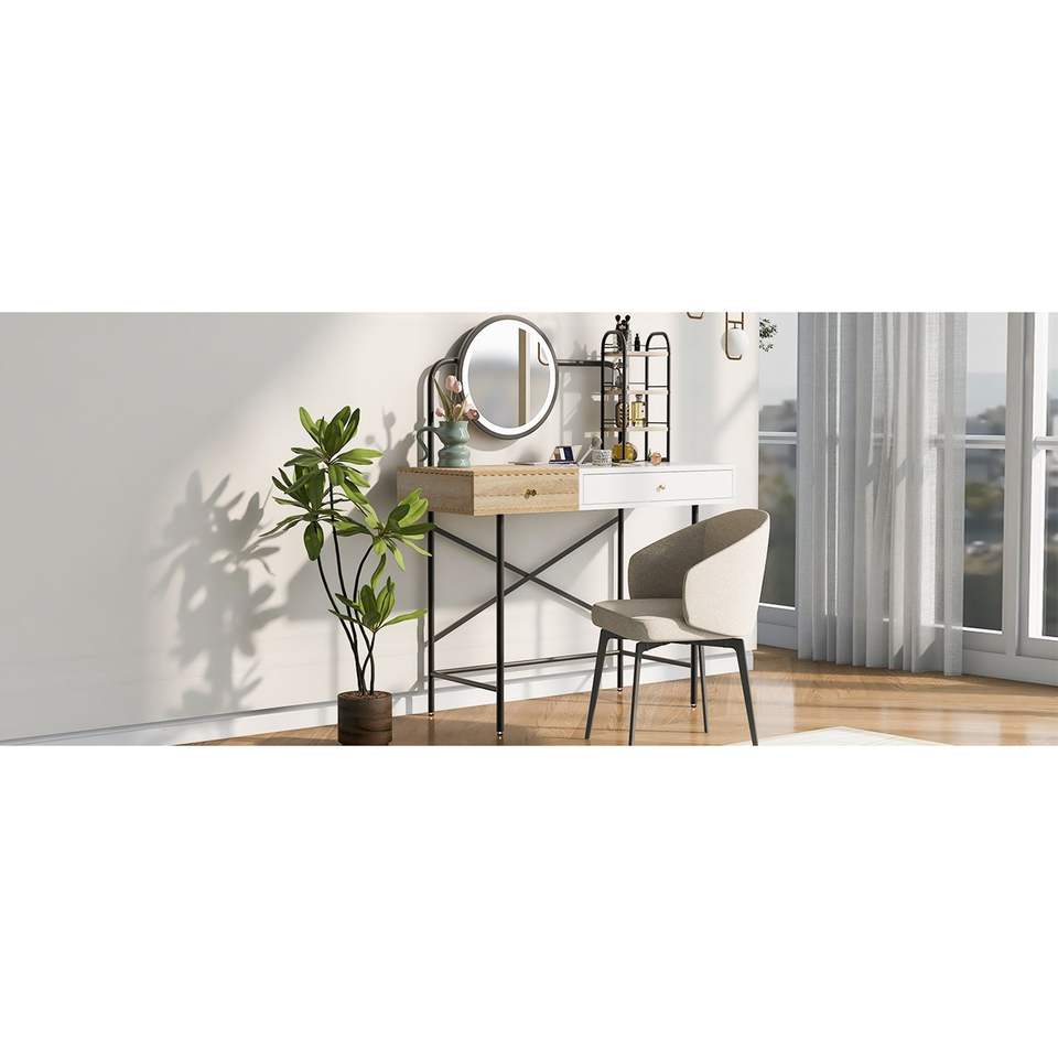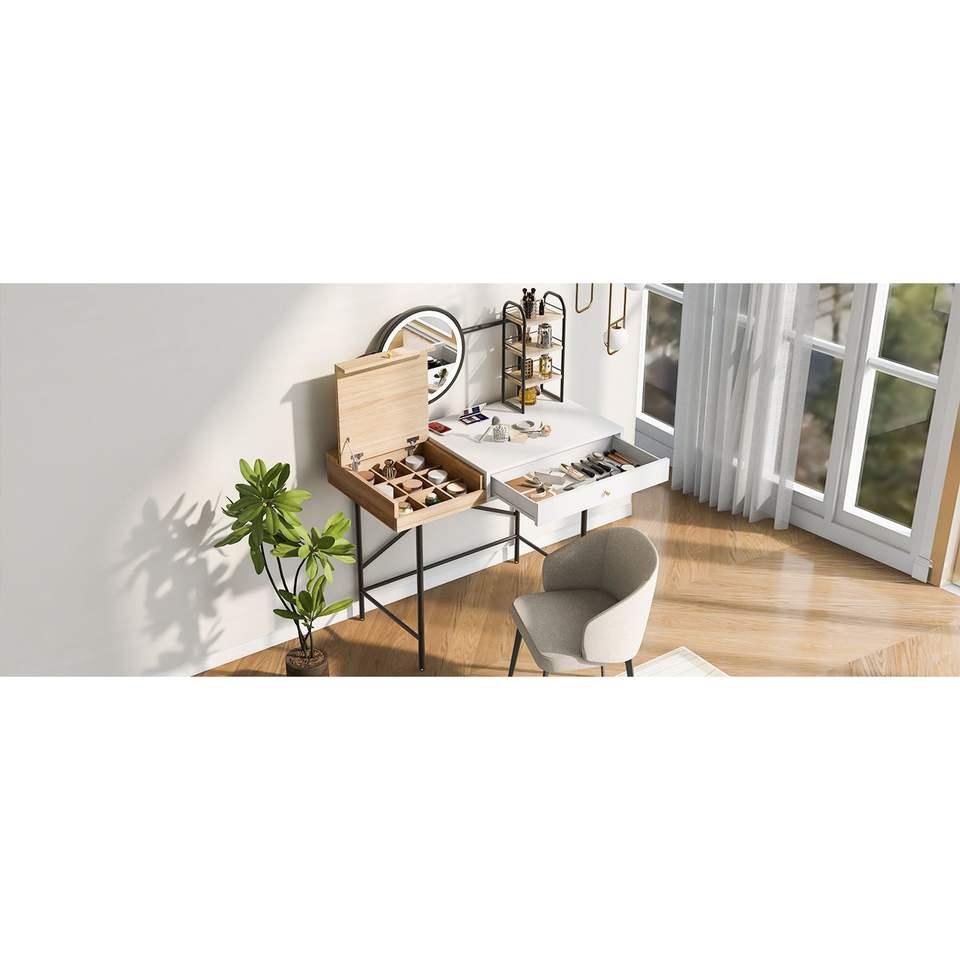 Tocador de Maquillaje de 40 Pulgadas con Espejo Iluminado de 3 Modos, Estación de Carga Inalámbrica, 3 Estantes Abiertos y Cajón
