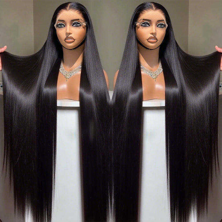 Peluca frontal de encaje transparente HD 13x4 de 40 pulgadas, pre-arrancada, sin pegamento, lisa como un varón, de cabello virgen Remy brasileño sin procesar para mujeres afroamericanas.
