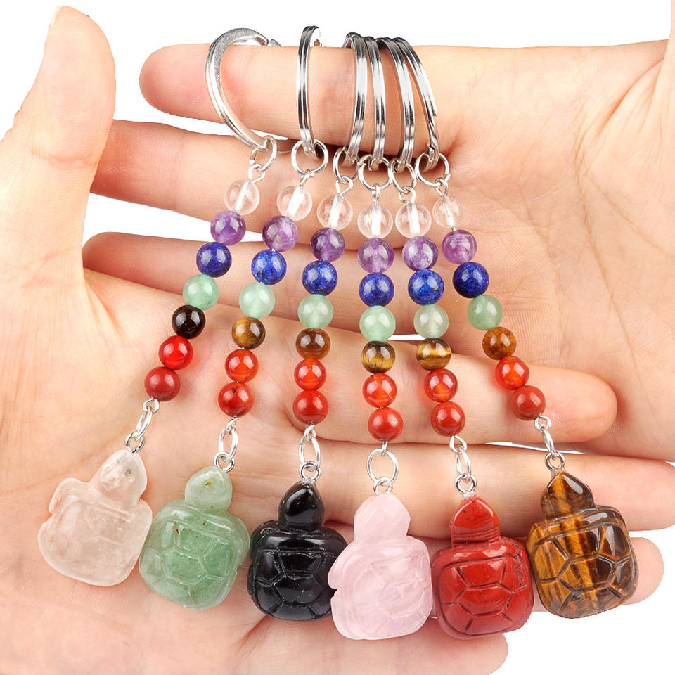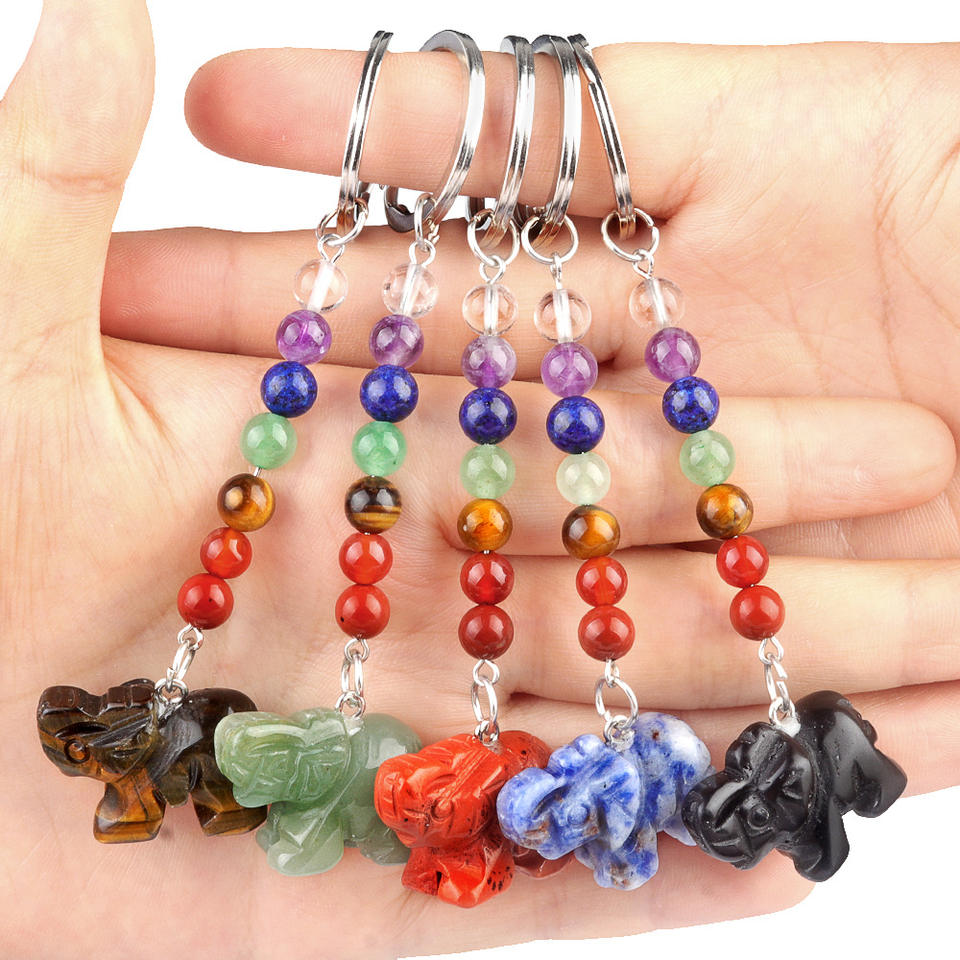 40 tipos surtidos de 7 Chakras piedras preciosas Animal manzana corazón colgante llavero piedra de cristal llavero para pareja mejor amigo regalo familiar