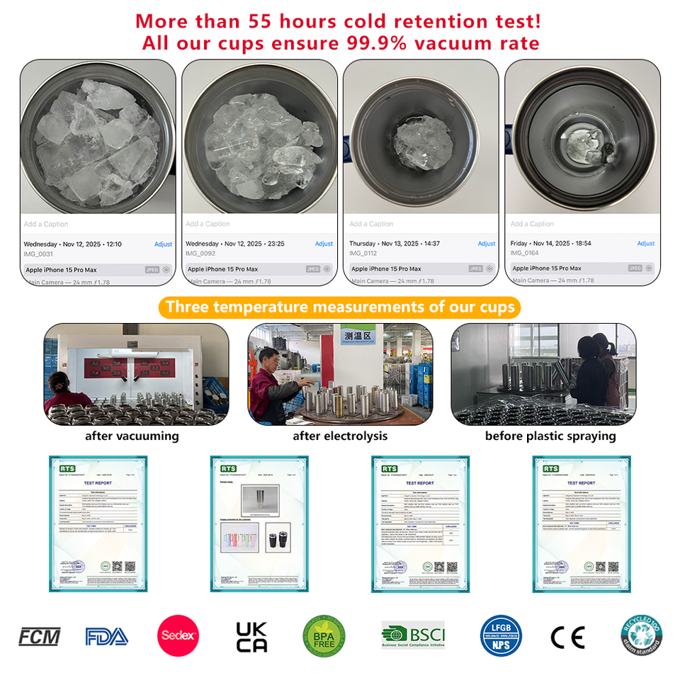 Material principal:Acero inoxidable de grado alimenticio 304/316 (estructura de vacío de doble pared)