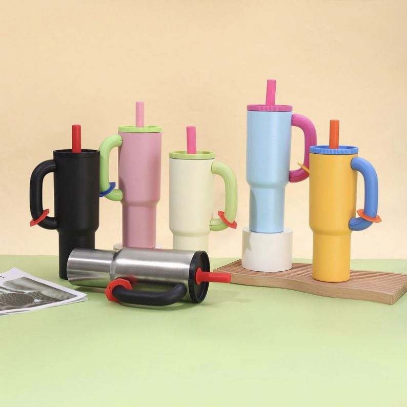 Vaso aislado de acero inoxidable para taza de coche resistente a fugas de 40 Oz con tapa y pajita abatible
