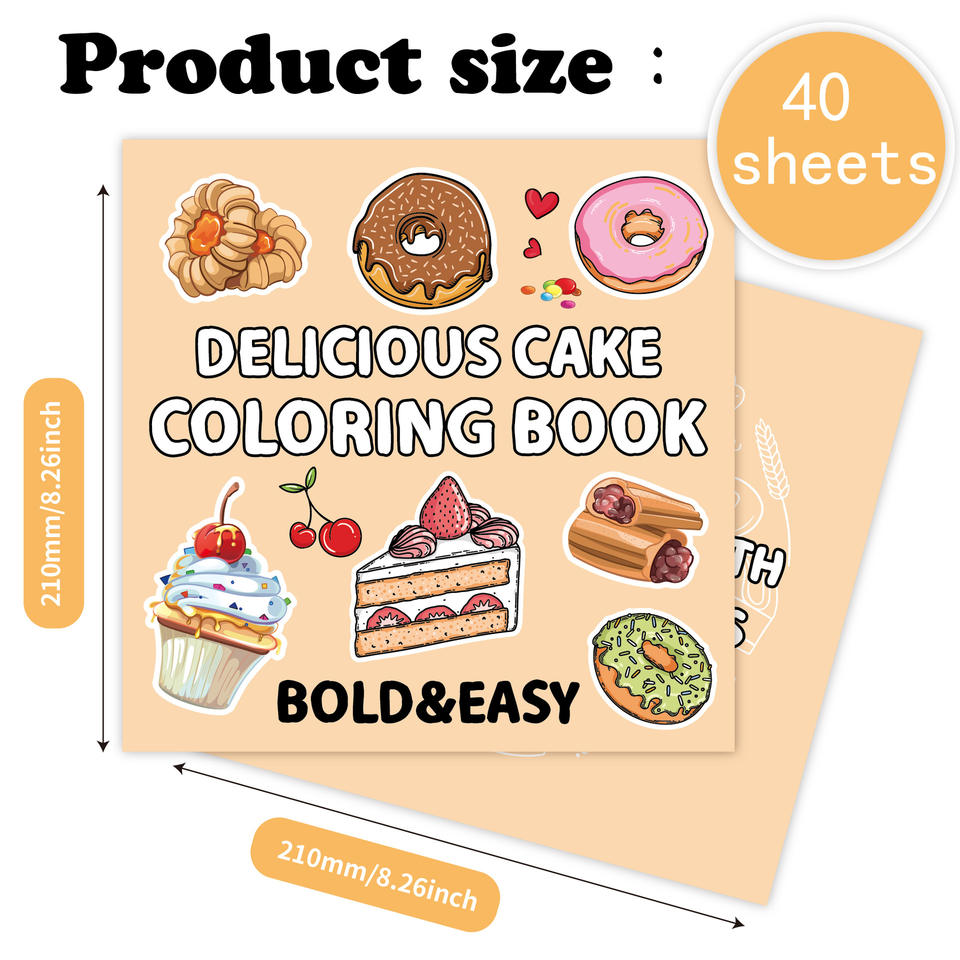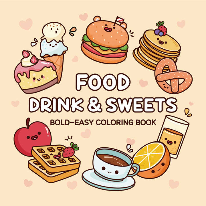 Libro para colorear de 40 páginas para niños, lindos y acogedores diseños audaces y fáciles, libros para colorear de alimentos, bebidas y dulces para adultos y adolescentes