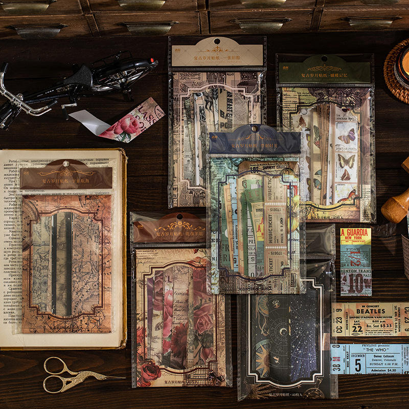 Paquete de 40 Pegatinas de Franjas Largas, Serie Retro Years, Universo Mariposa, Material para Diario, Pegatinas Decorativas, 6 Modelos