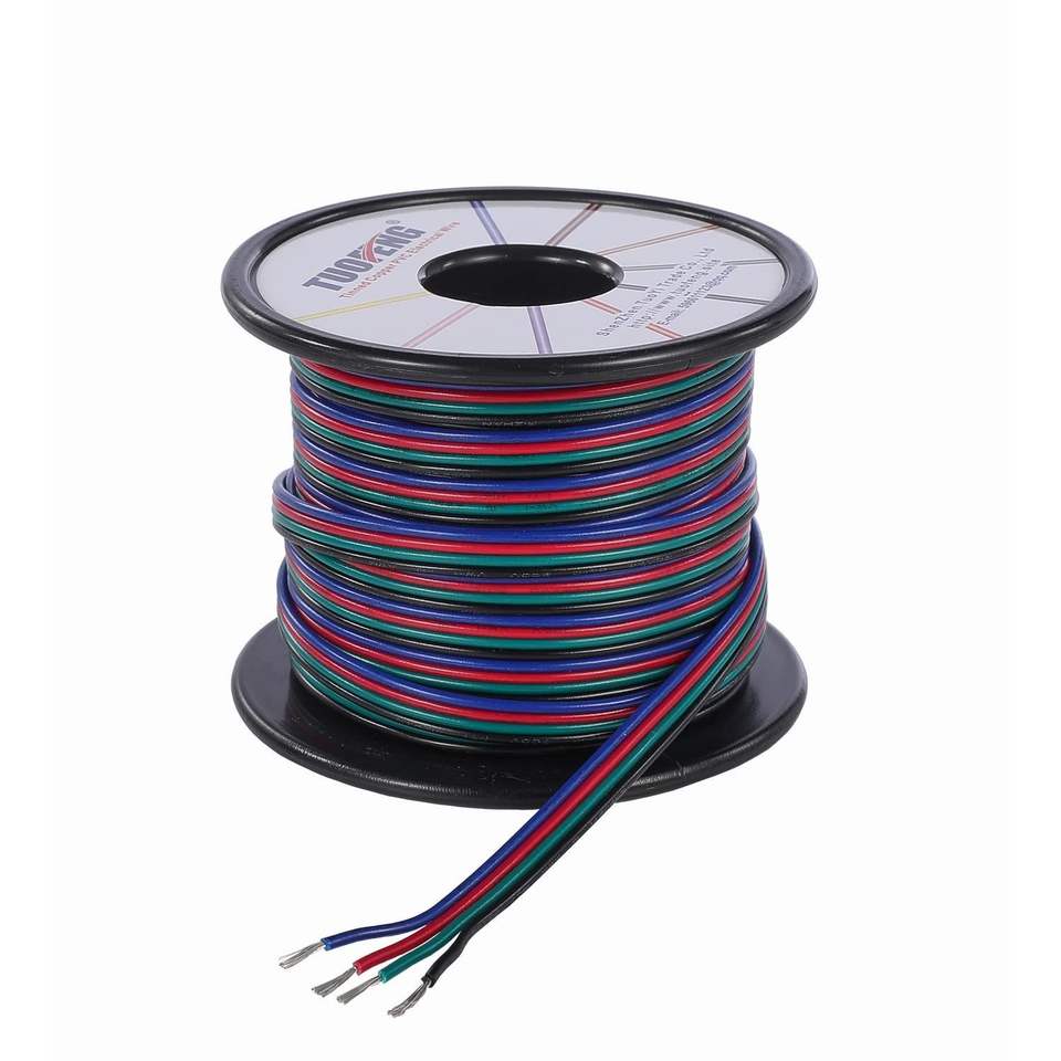 Cable de Extensión RGB de 40 pies con Luces de 4 Colores, Cable Eléctrico de 4 Pines y 20 AWG para Tira de LED Individual, Bobina de 40 pies, Línea 4