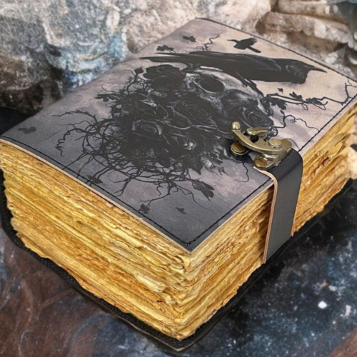 Nombre del producto:Libro de las Sombras Raven de 400 páginas, Grimoire Vintage de Cuero, Tipo Diario.