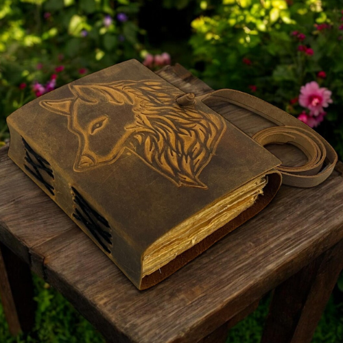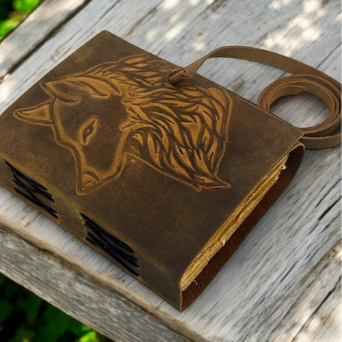 Fox Embossed Leather Grimoire Journal Blank Book of Shadows Vintage