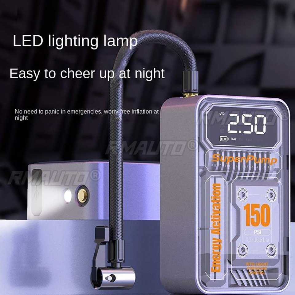 Inflador de Aire para Auto de 4000 mAh, Bomba de Neumáticos Inalámbrica, Compresor de Aire con Pantalla Digital de 3-150 PSI para Autos, Motocicletas y Bicicletas