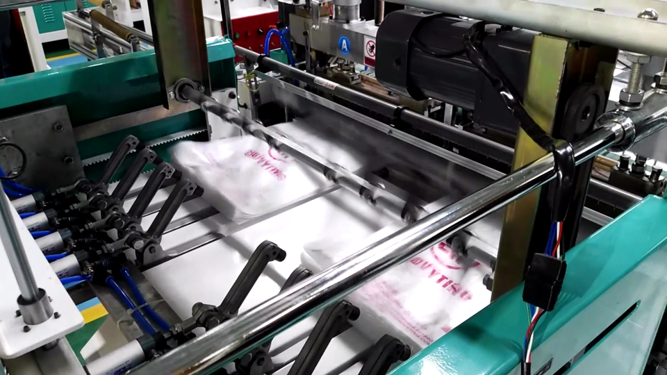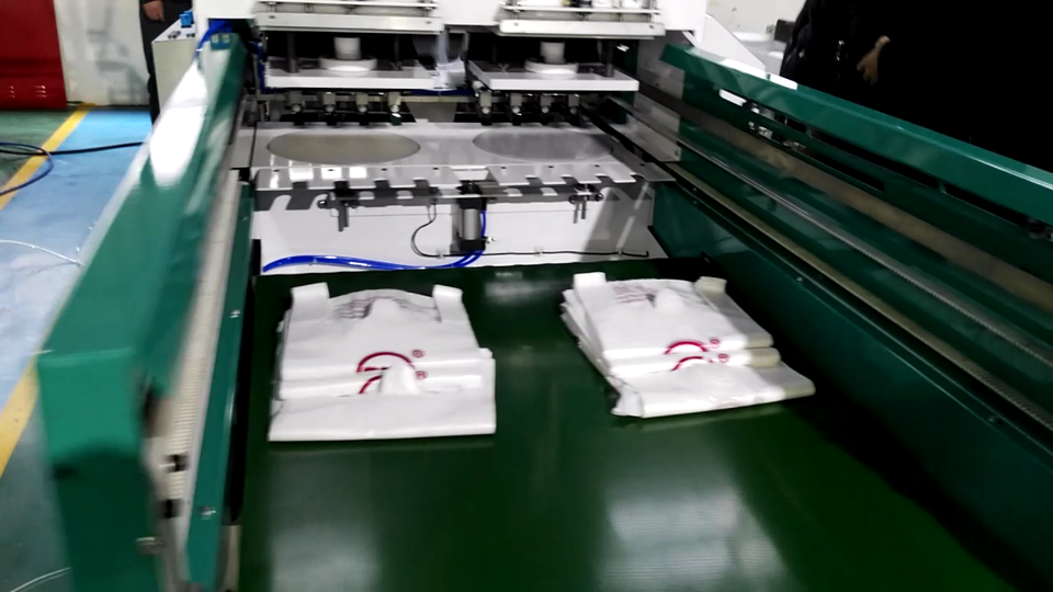 Máquina de fabricación de bolsas de polietileno de compras de plástico con asa de transporte automática de 2 líneas 400NT2 para hacer bolsas de camisetas