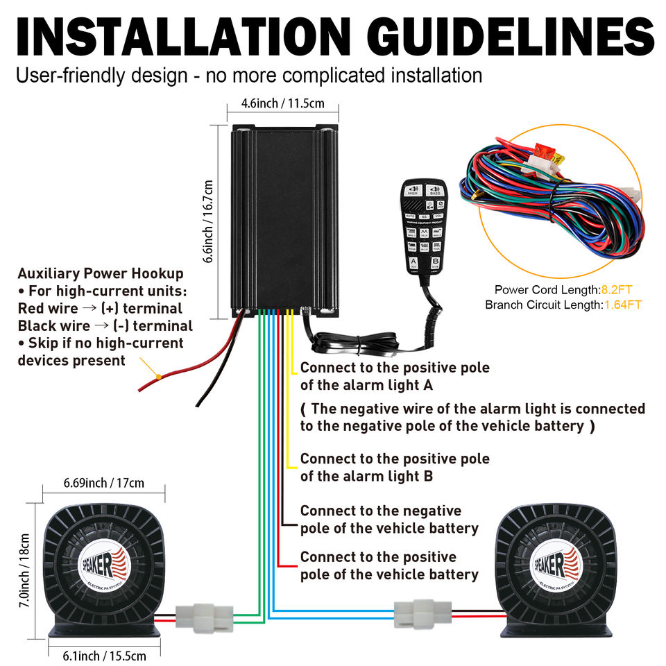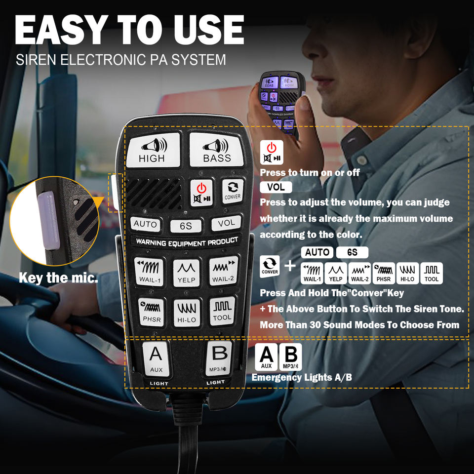 Kit de sistema PA de emergencia de 400W con sirena de hierro extra delgada y micrófono de mano multitonos para ambulancia altavoz bocina Coche