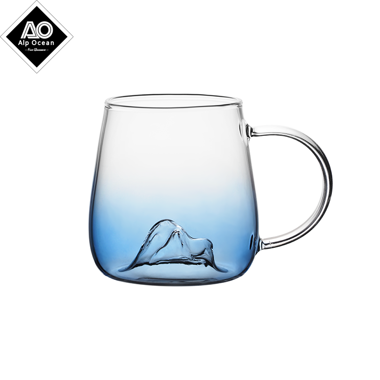 Taza de vidrio resistente al calor, diseño de montaña, color azul, 400ml