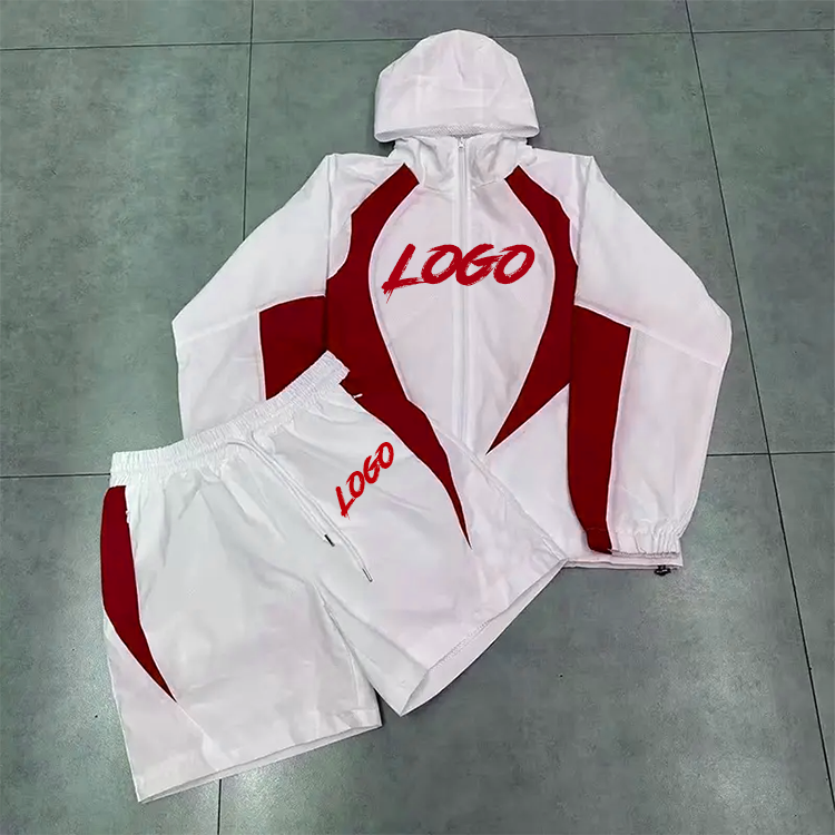 Conjunto Deportivo Personalizado para Hombre, Dos Piezas, con Estampado DTG, Chaqueta Cortavientos con Cierre y Pantalones Cortos de Nylon