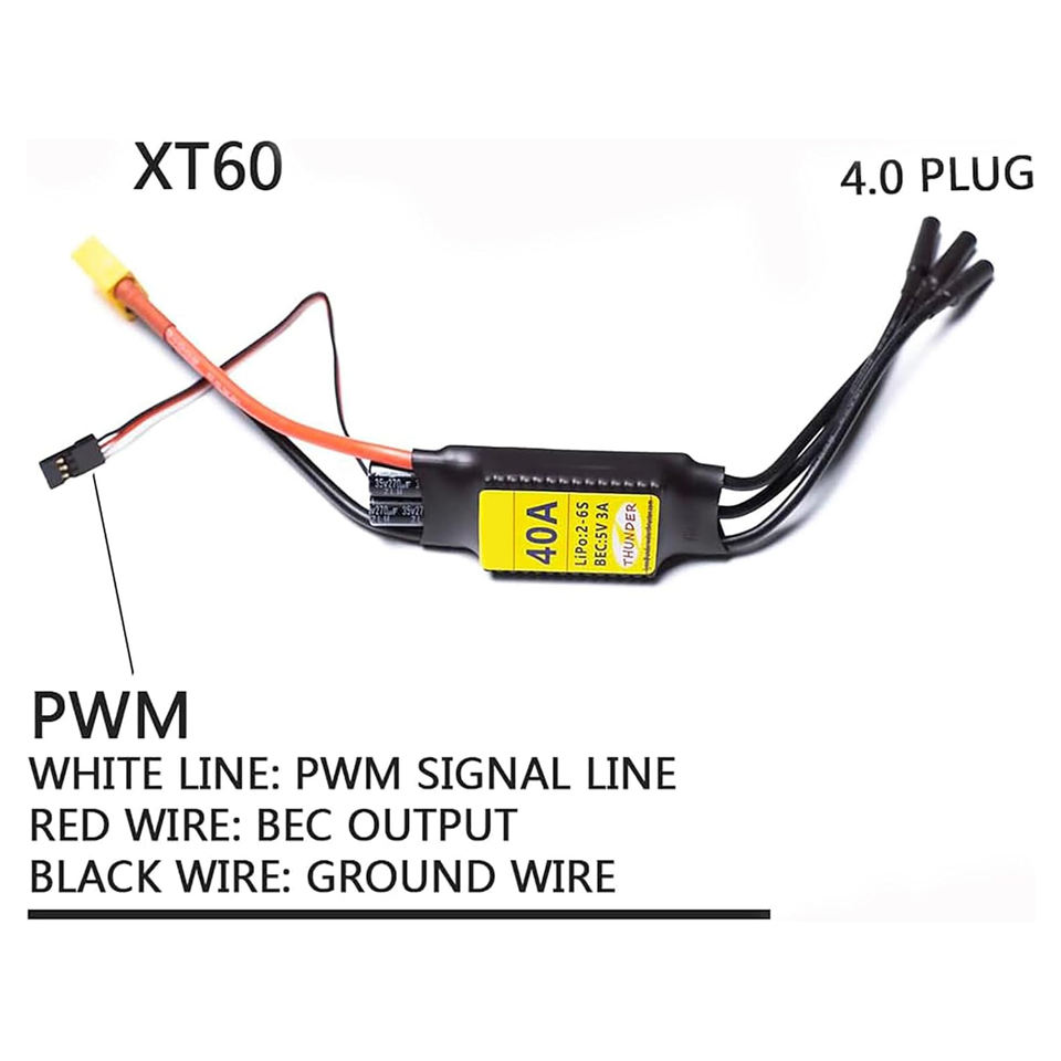 Controlador de Velocidad Electrónico sin Escobillas ESC 40A 2-6S LiPo con BEC XT60 y Conector de 4.0mm para Dron RC, Modelo de Avión
