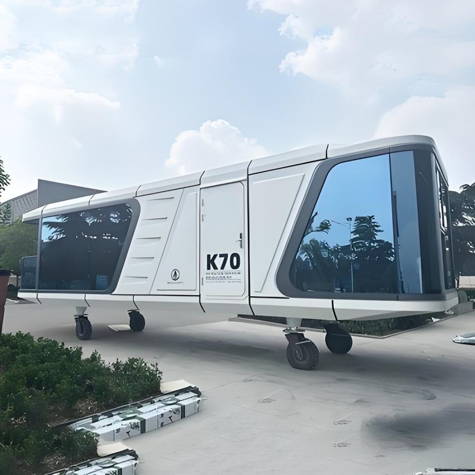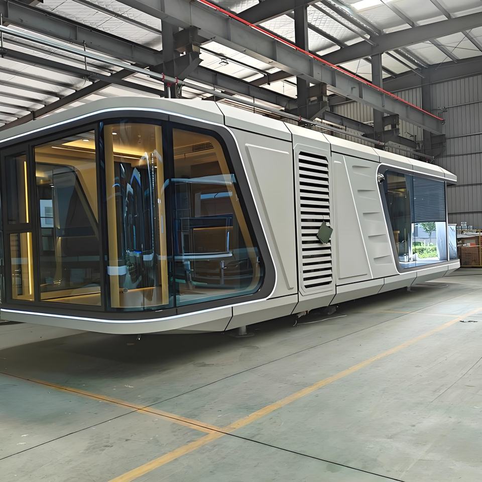 Casa de cápsula espacial moderna móvil de tecnología inteligente con energía solar de 40 pies para alquiler de vacaciones