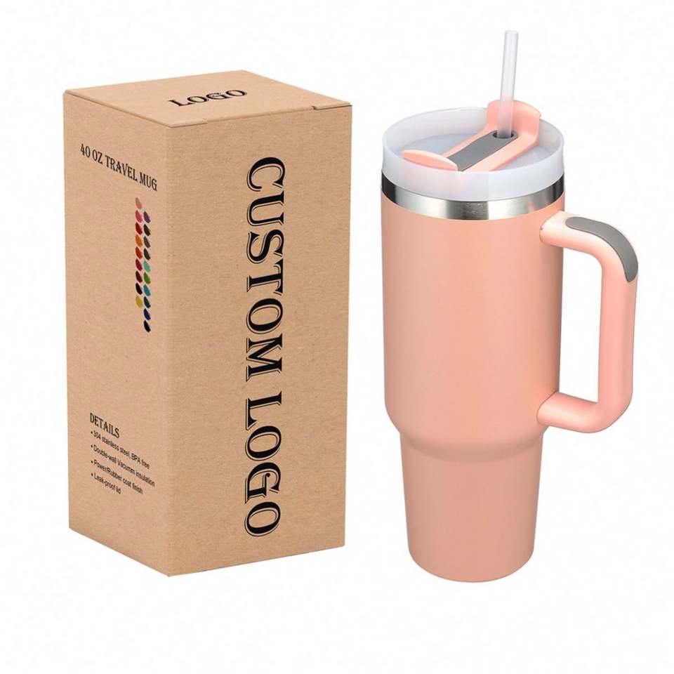 Taza de café con mango de vacío de acero inoxidable de 40OZ, taza de café de Metal helado con piedra de cristal de diamantes de imitación, vaso ostentoso de diamantes de moda