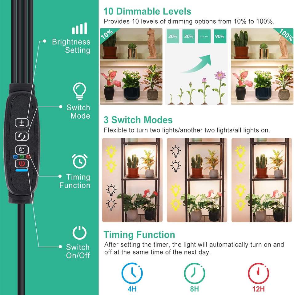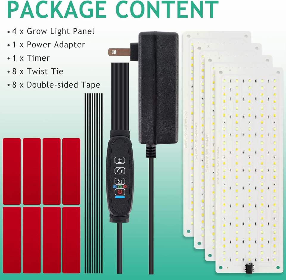 Luz de cultivo de 40W con adaptador, panel de 4 LED, luces de cultivo de escritorio de 540 LED, lámpara de cultivo debajo del gabinete con temporizador para el crecimiento de plantas de interior