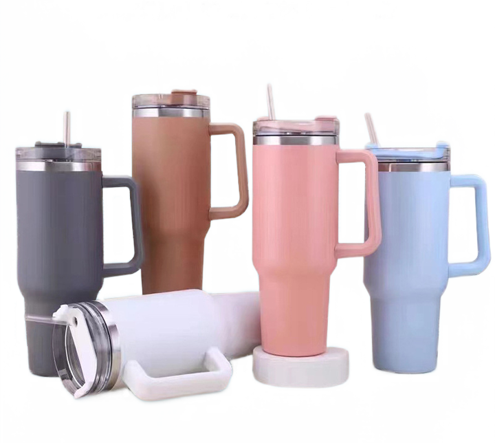 Vaso Térmico de Viaje de Acero Inoxidable de 40 oz con Asa y Agarre Inspirado en Diamantes, Venta al por Mayor con Pajita para Uso en Exteriores