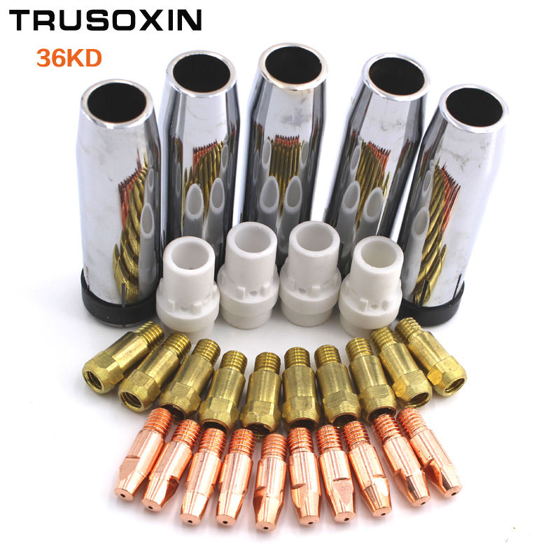 40 piezas de consumibles que incluyen protectores de punta, boquillas y anillos de gas para antorcha MIG MAG 36KD, para uso en máquinas de soldadura MIG MAG