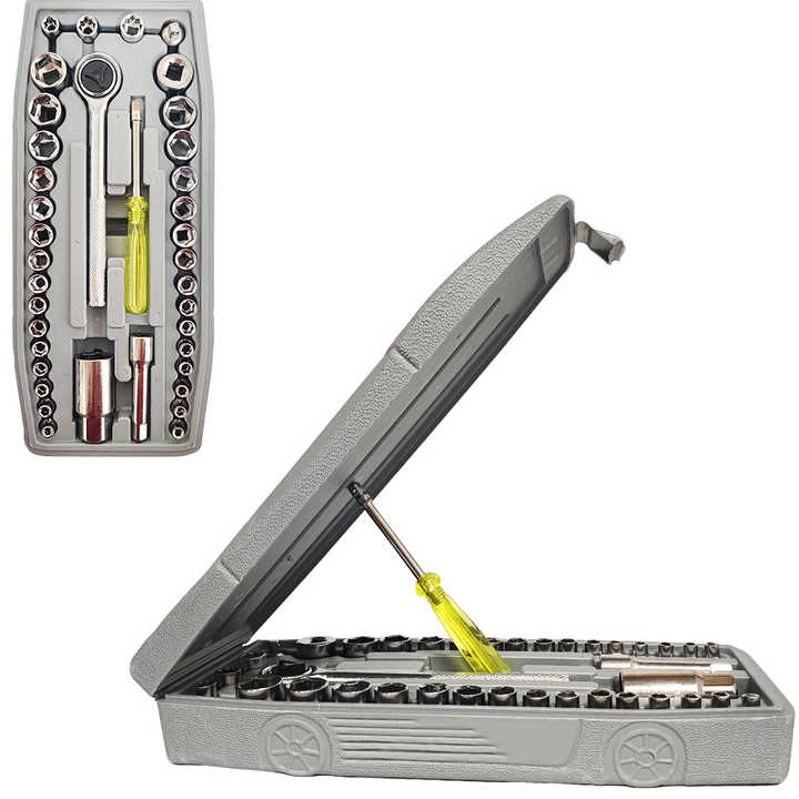 Juego de Herramientas Manuales de Alta Calidad de 40 Piezas, Juego de Herramientas para Reparación de Automóviles, Juego de Llaves de Trinquete de 1/4 y 3/8 Pulgadas