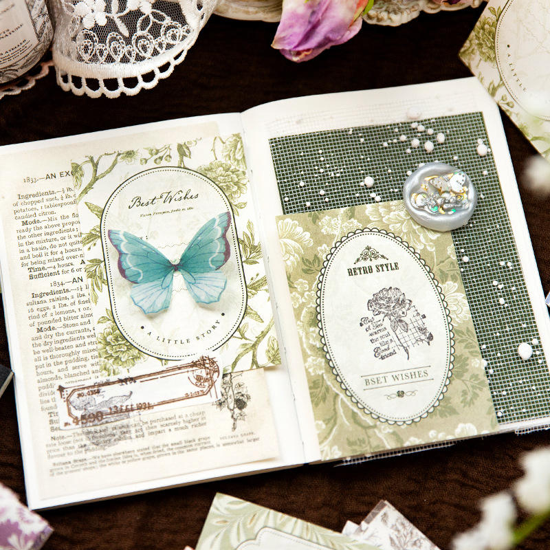 40 unids/pack Retro mensaje Material Bloc de notas años fragante serie luz Retro diario decoración Material papel Base 5 modelos