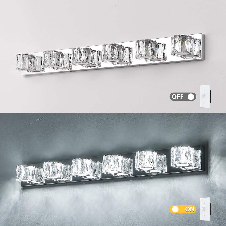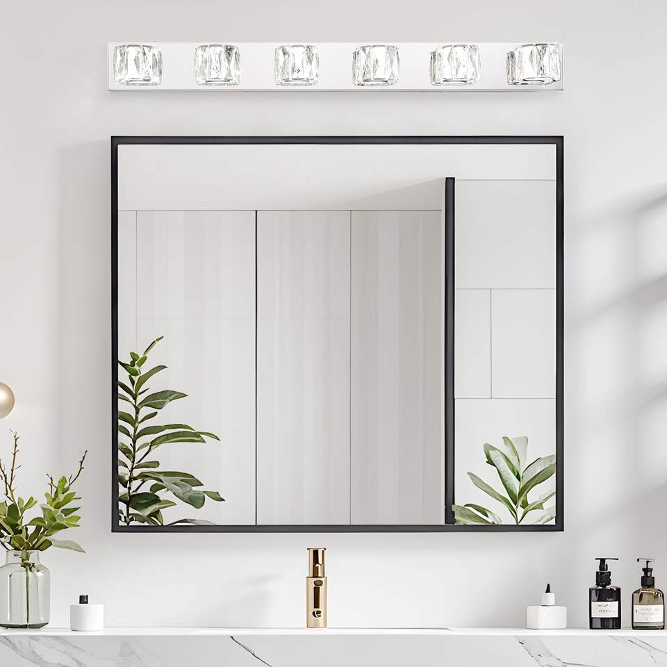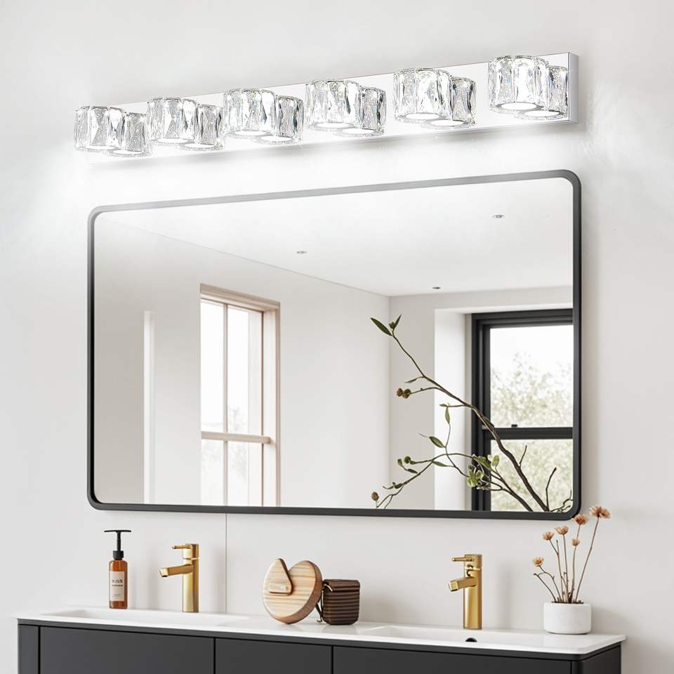 Lámpara de Pared LED Moderna de Cristal de 41 Pulgadas con 6 Luces, Elegante Lámpara de Baño Cromada con Pantallas de Cristal Transparente para Baño y Dormitorio