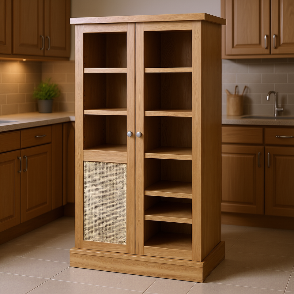 Armario de Cocina de Ratán Natural de 41 Pulgadas con 12 Puertas y Estantes, 5 Niveles de Almacenamiento Ajustables, Diseño Moderno, Estilo Madera Sólida