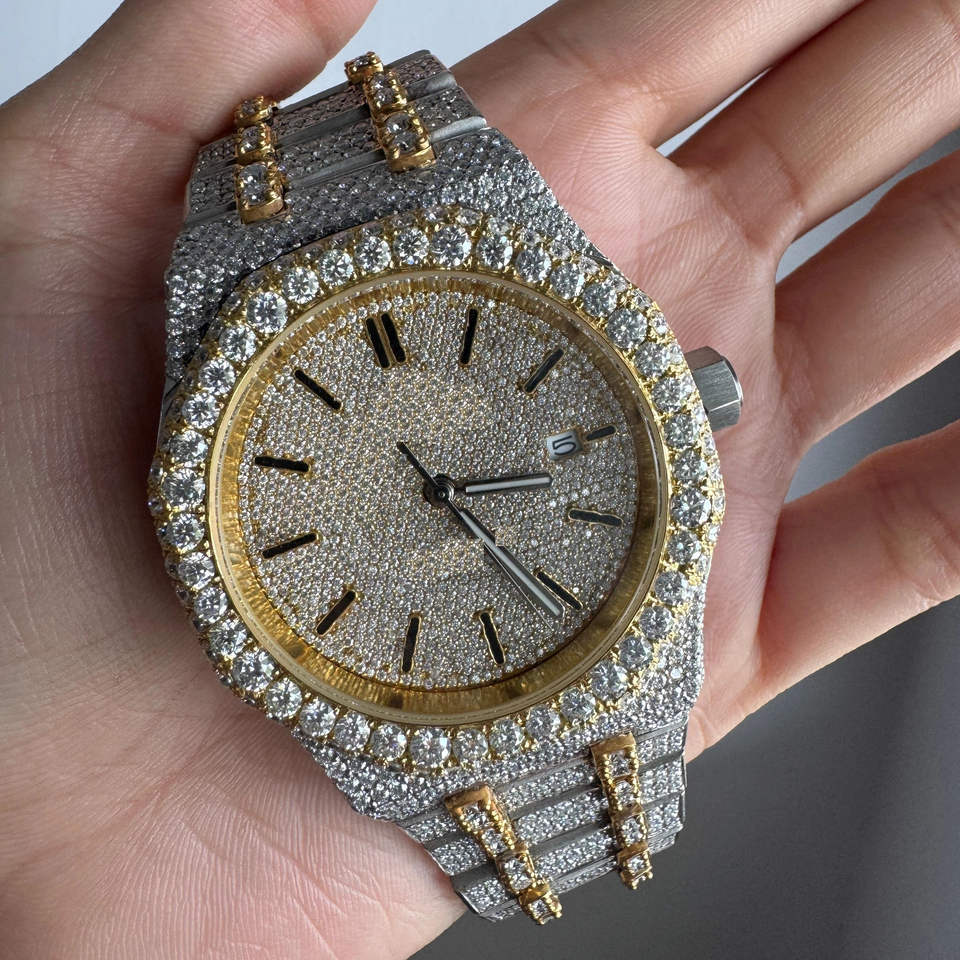 Reloj de lujo de 41MM con diamantes cultivados en laboratorio, corte redondo para hombres, colección de Hip Hop, reloj de acero inoxidable con esqueleto