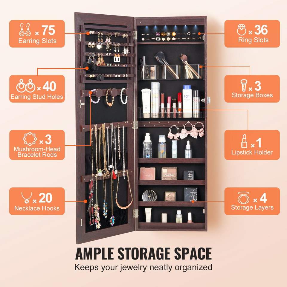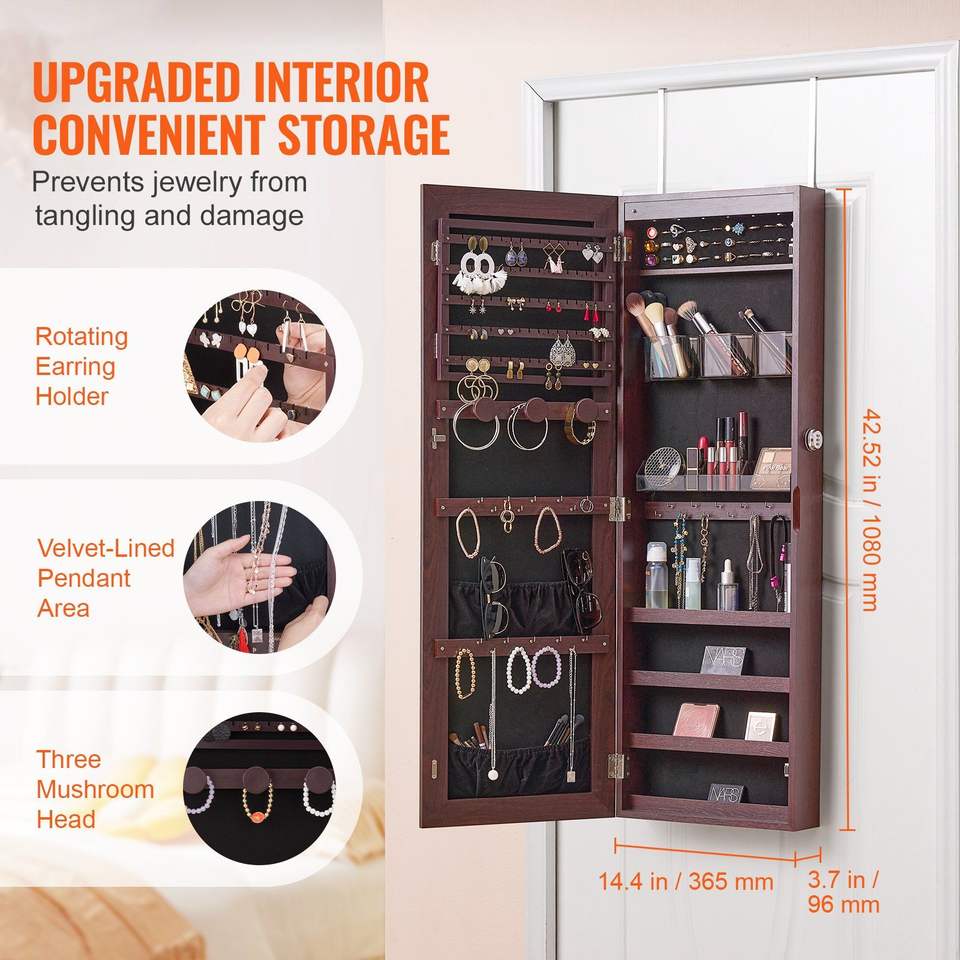 Armario para Joyas con Cerradura de 42.52 Pulgadas de Alto, Armario para Joyas con Espejo de Cuerpo Entero y Montaje en Pared