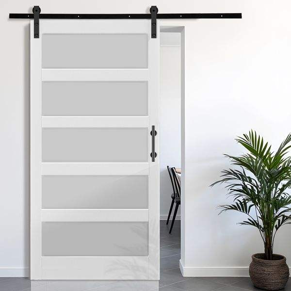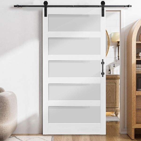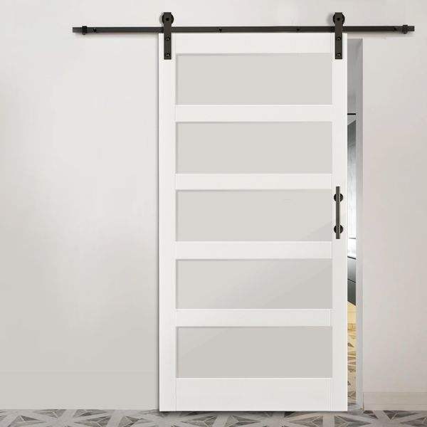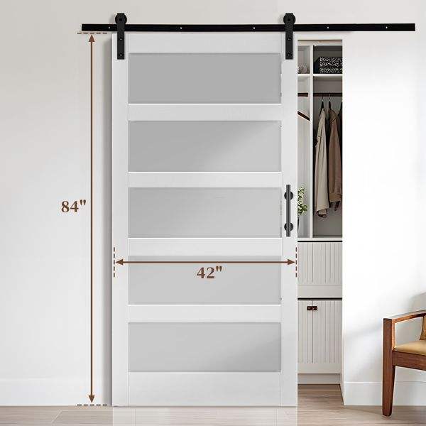 42 Pulgadas X 84 Pulgadas Kit de Herrajes para Puerta Corredera de 7 Pies (42 Pulgadas) con 5 Paneles de Vidrio Templado, Instalación Sencilla X 84 Pulgadas Puerta Corredera