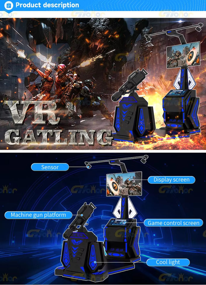 Máquina de Juego de Disparos VR Gatling con Pantalla LCD HD de 42 Pulgadas, 18 Juegos Clásicos, Uso en Interiores, 1 Jugador
