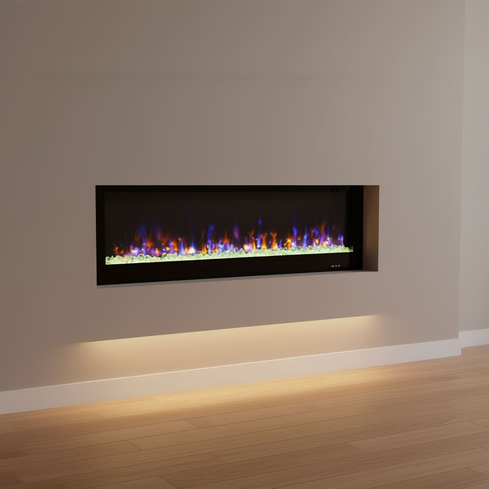 Chimenea Eléctrica de 42 Pulgadas, Montada en la Pared, con Control Remoto, Llama LED, Calefactor Empotrado, Diseño Metálico Ultra Delgado